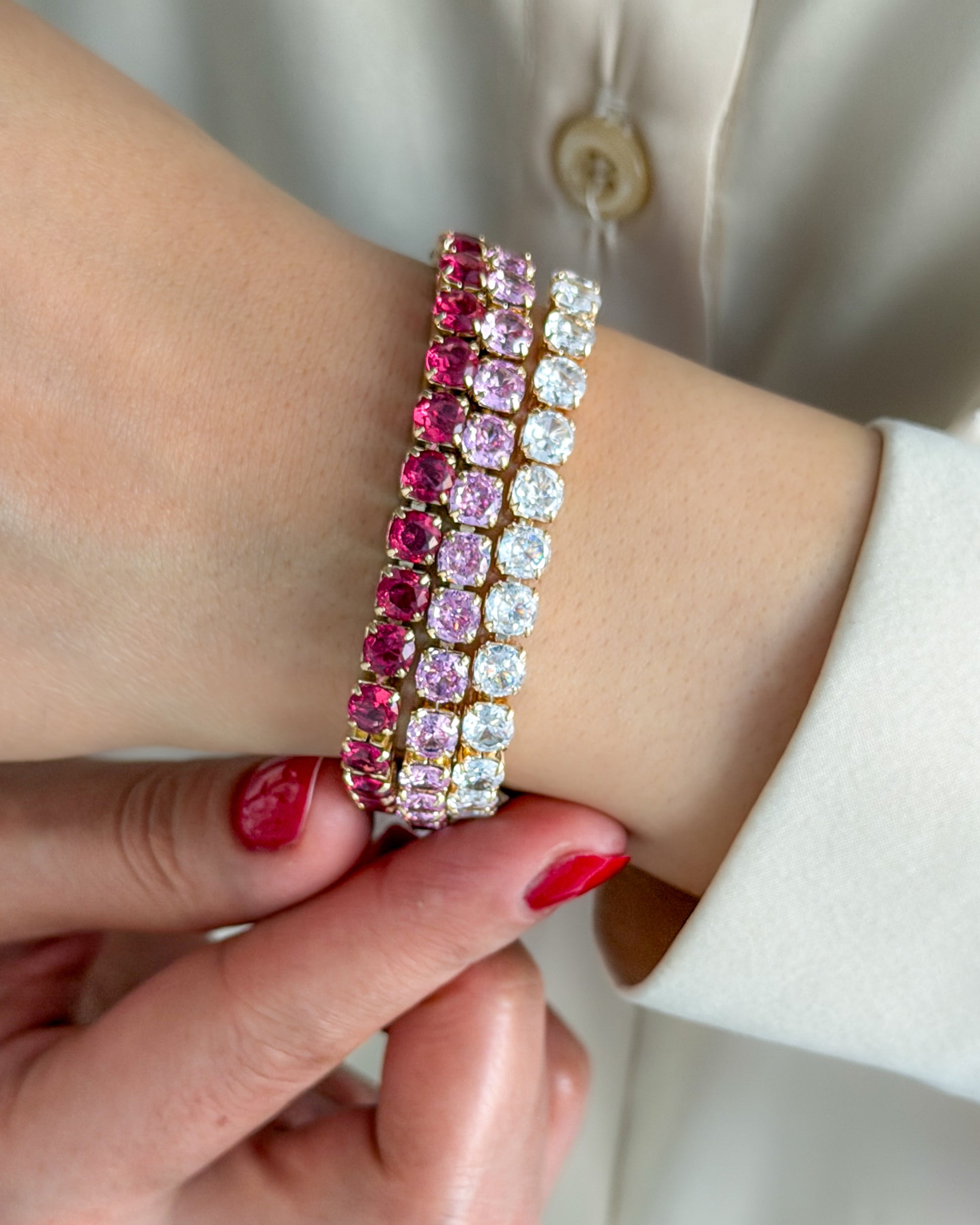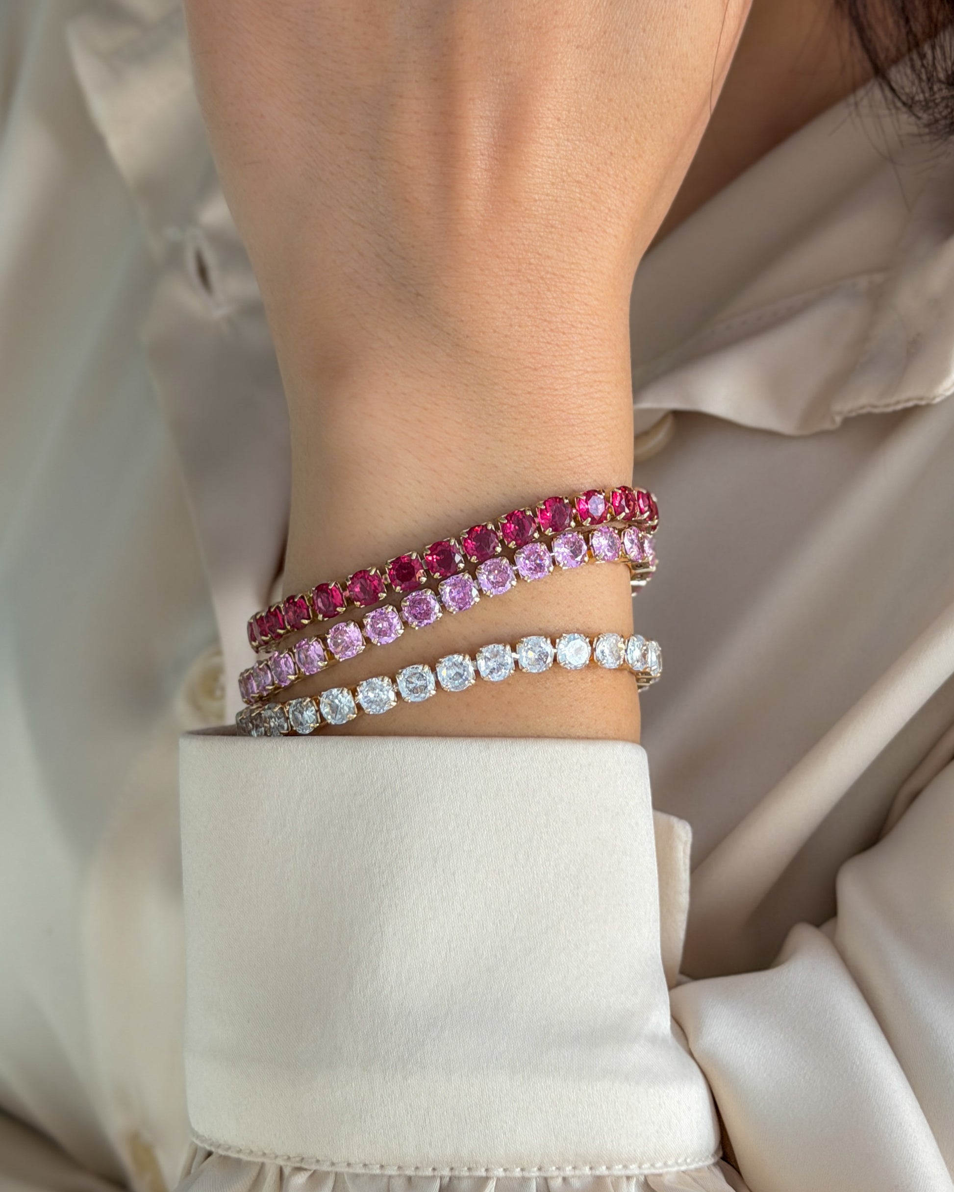 A bold twist on the classic tennis bracelet. featuring bright, round-cut cubic zirconia for a clean, effortless shine. Perfect worn solo or stacked for a modern, elevated look.